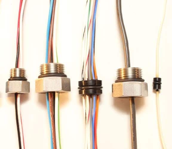 Hermetic cable feedthroughs offer more strength than a wire feedthrough and allow for more control with electrical transfer. These cable feedthroughs are commonly used in industries similar to wire feedthroughs: military vehicles, medical equipment, and industrial machinery.
