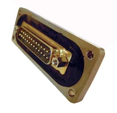 Hermetic 25 socket D-sub to 25 pin D-sub in an SS flange. Assembly supplied with Viton o-ring. 100% of parts are checked for quality including dimensional inspection, connector mateability, visual workmanship, leak tested for a <1X10^-8 STD-CC/SEC leak rate or better, electrical hipot 500 VDC 500 MOhms, & continuity testing.