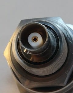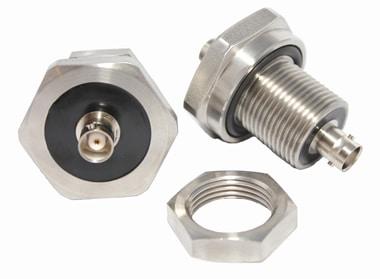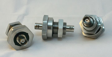 Hermetic BNC jack to BNC jack in an SS housing with 3/4-16 UN X .75 thread. Assembly supplied with Viton o-ring & SS jam nut. 100% of parts are checked for quality including dimensional inspection, connector mateability, visual workmanship, leak tested for a <1X10^-7 STD-CC/SEC leak rate or better, electrical hipot 500 VDC 500 MOhms, & continuity testing.