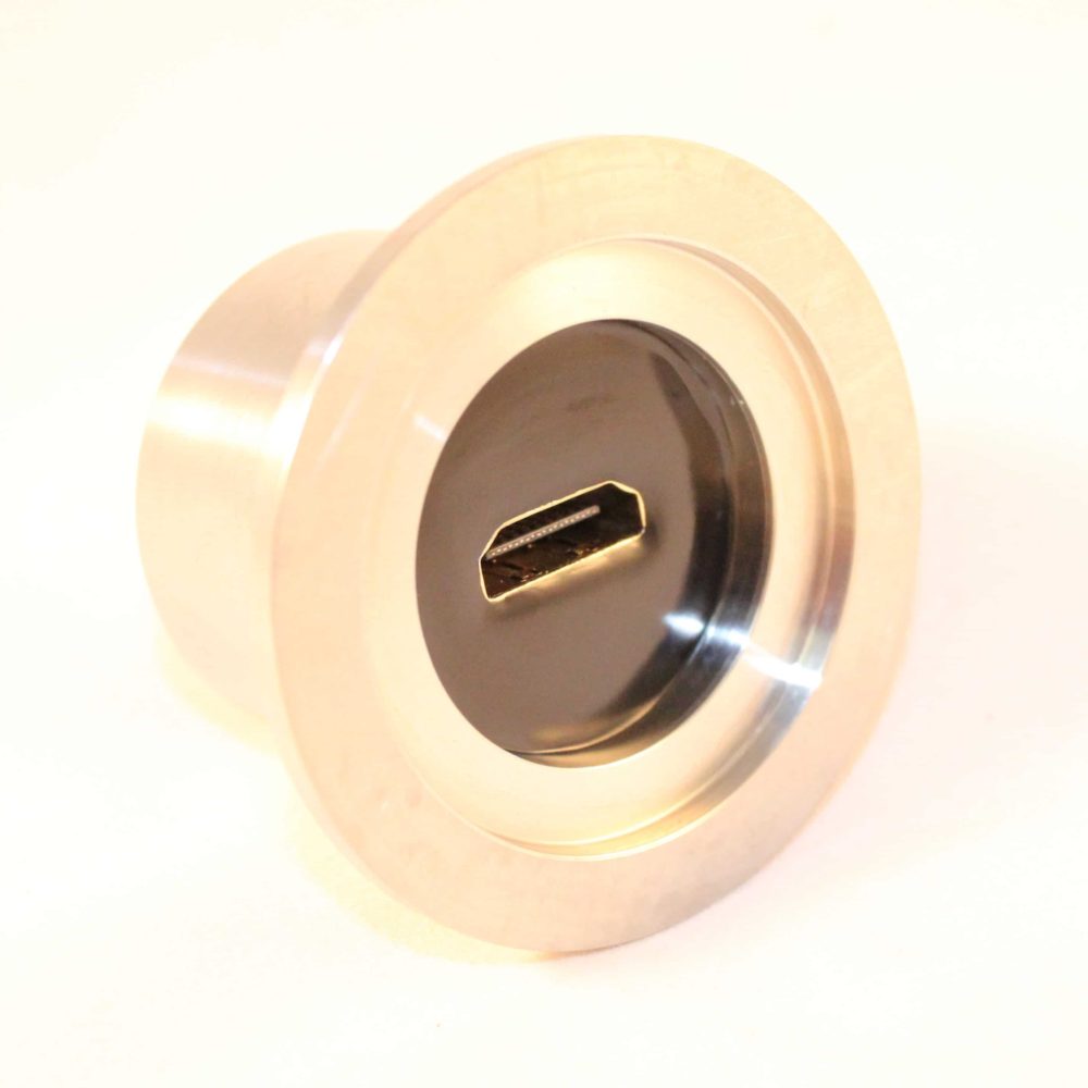 • Hermetic HDMI jack to HDMI jack in a SS NW40 (Quick flange QF, Klein flange KF, or DN) housing. 100% of parts are checked for quality including dimensional inspection, connector mateability, visual workmanship, leak tested for a <1X10^-7 STD-CC/SEC leak rate or better, electrical hipot 500 VDC 500 MOhms, & continuity testing.
